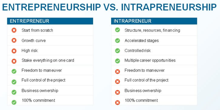Then you can run your own company and control everything about it. From employee, to intrapreneur, to entrepreneur – you have a lot to aspire and grow into. This path is totally scalable which you can build upon. Good luck and always keep your eyes open for developmental opportunities you can grow into.